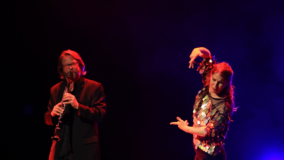 Dansuppvisning Pia ”del Norte” Pohjakallio, dans och Kaj Sundquist, klarinett.