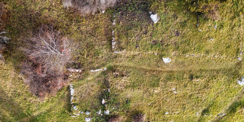 Här vid Lunda och Skesta ligger gravarna på en rygg av moränjord och syns som små upphöjda kullar i landskapet, täckta av torv.